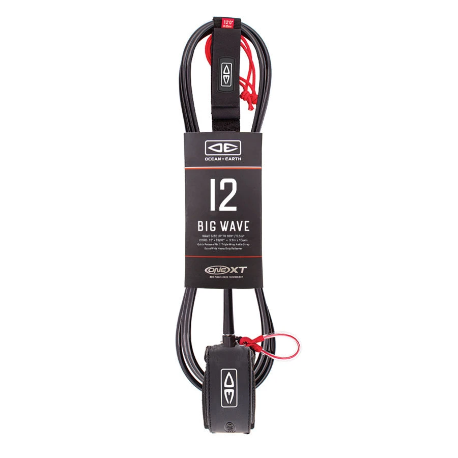 Go big or go home. The Big Wave Pin Release Surfboard Leash in 12ft is designed for waves up to 18ft. Featuring a triple-wrap strap, extra-wide rail saver and heavy-duty plug cords, this leash is sure to stay secure.