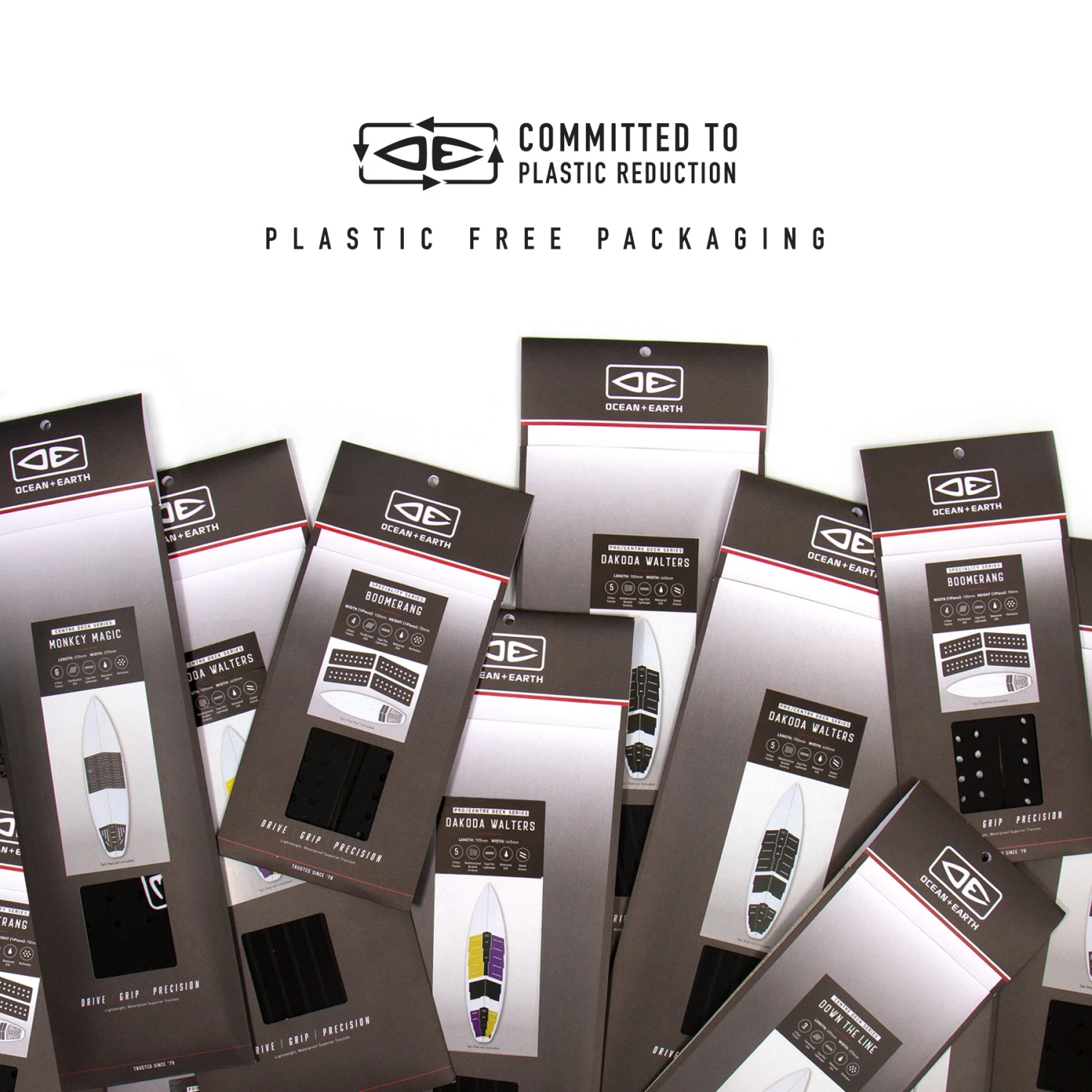 The Boomerang 4-Piece Surfboard traction is super light but doesn’t compromise on grip and adhesion, maximising traction area on your board. Perfect for extending the traction area of you tail pad and or centre deck.