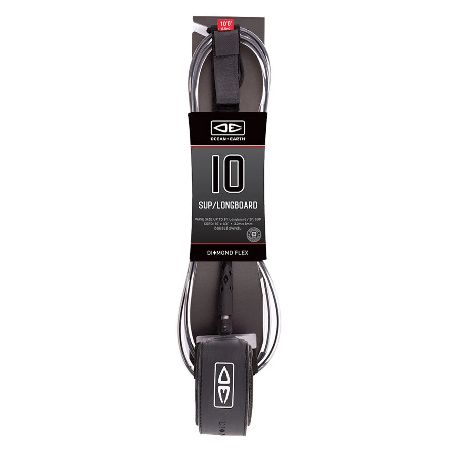Get cruising with the Diamond Flex SUP / Longboard Regular Leash in 10ft. Featuring our Diamond Flex Technology for controlled stretch and strength, this leash is suited for flat water paddling and small SUP waves or surf up to 8 foot on your Longboard.Â