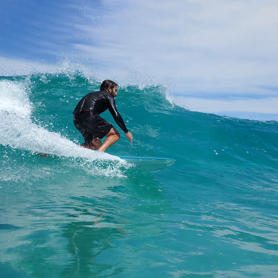 Our happiest surfboard yet, the Happy Hour Epoxy 6’0″ is designed for both fun and performance, making wave catching and manoeuvrability a breeze. Constructed using a lightweight EPS core and epoxy glass, adding durability and reduced weight for higher performance. The narrower tail shape and fuller nose combine to create a super versatile surfboard. The different fin combinations allow the board to be surfed in a variety of performance levels and waves.