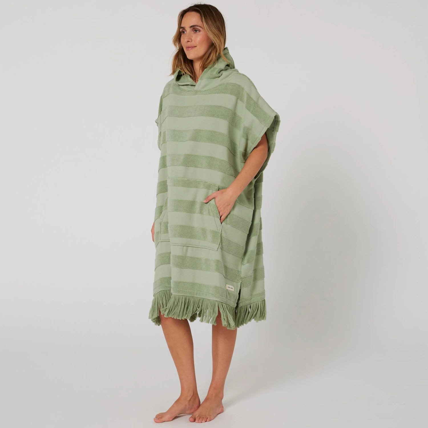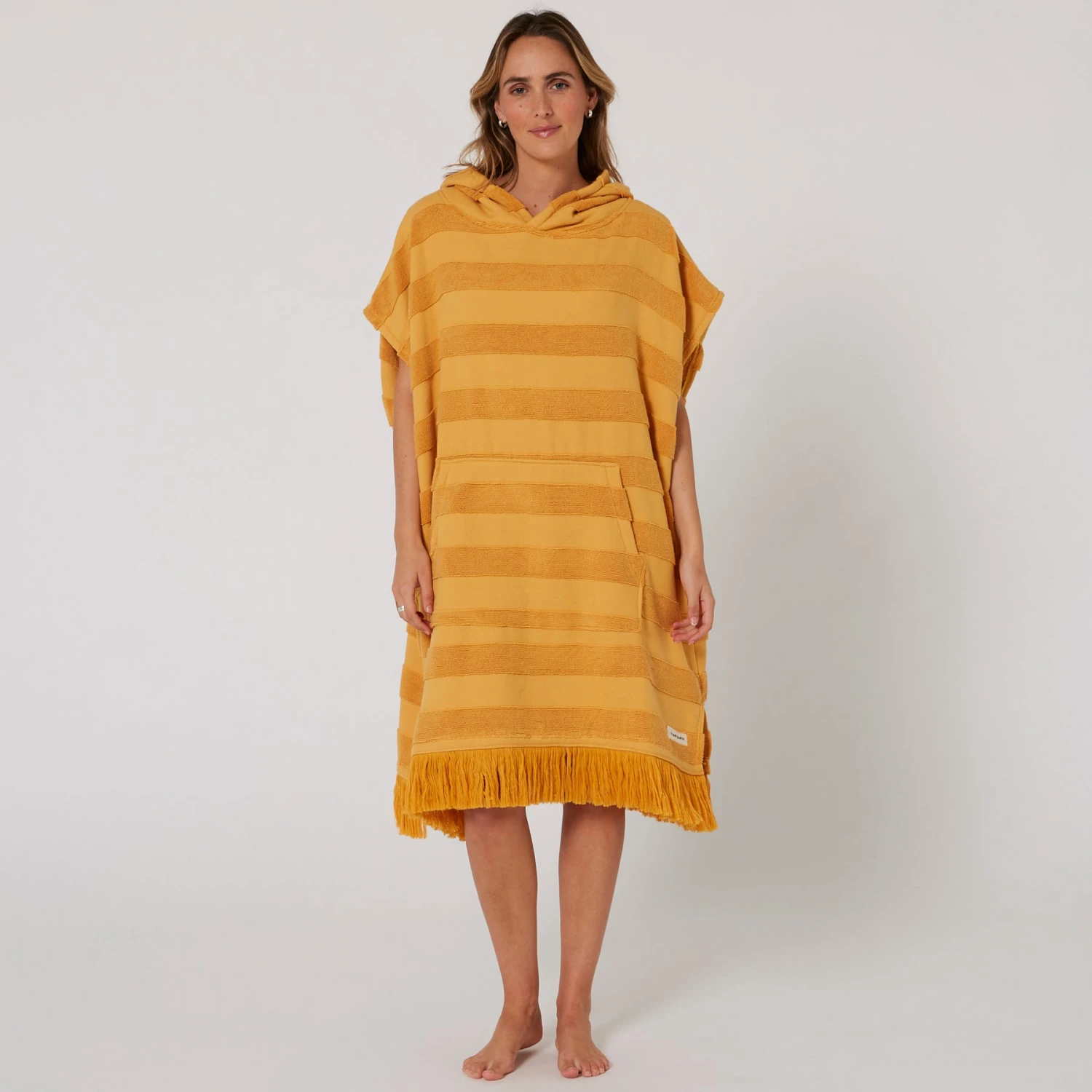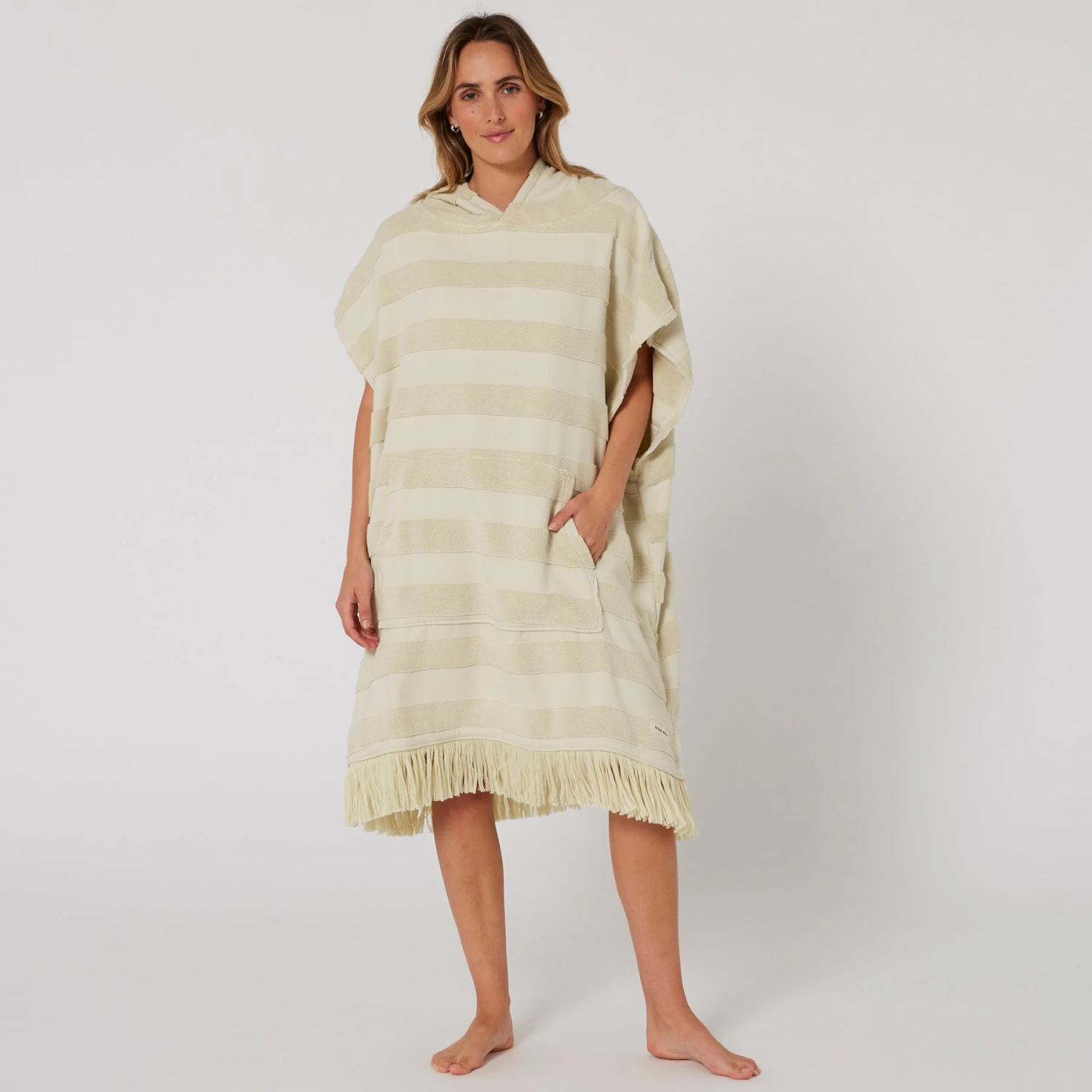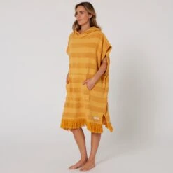 The Ladies Layz Hooded Poncho towel is perfect for drying off and changing out of your wetsuit or swimwear. With oversize sleeve openings and in lightweight 430SM 100% cotton Jacquard, lightweight poncho that you can slip in and out of after a day at the beach.