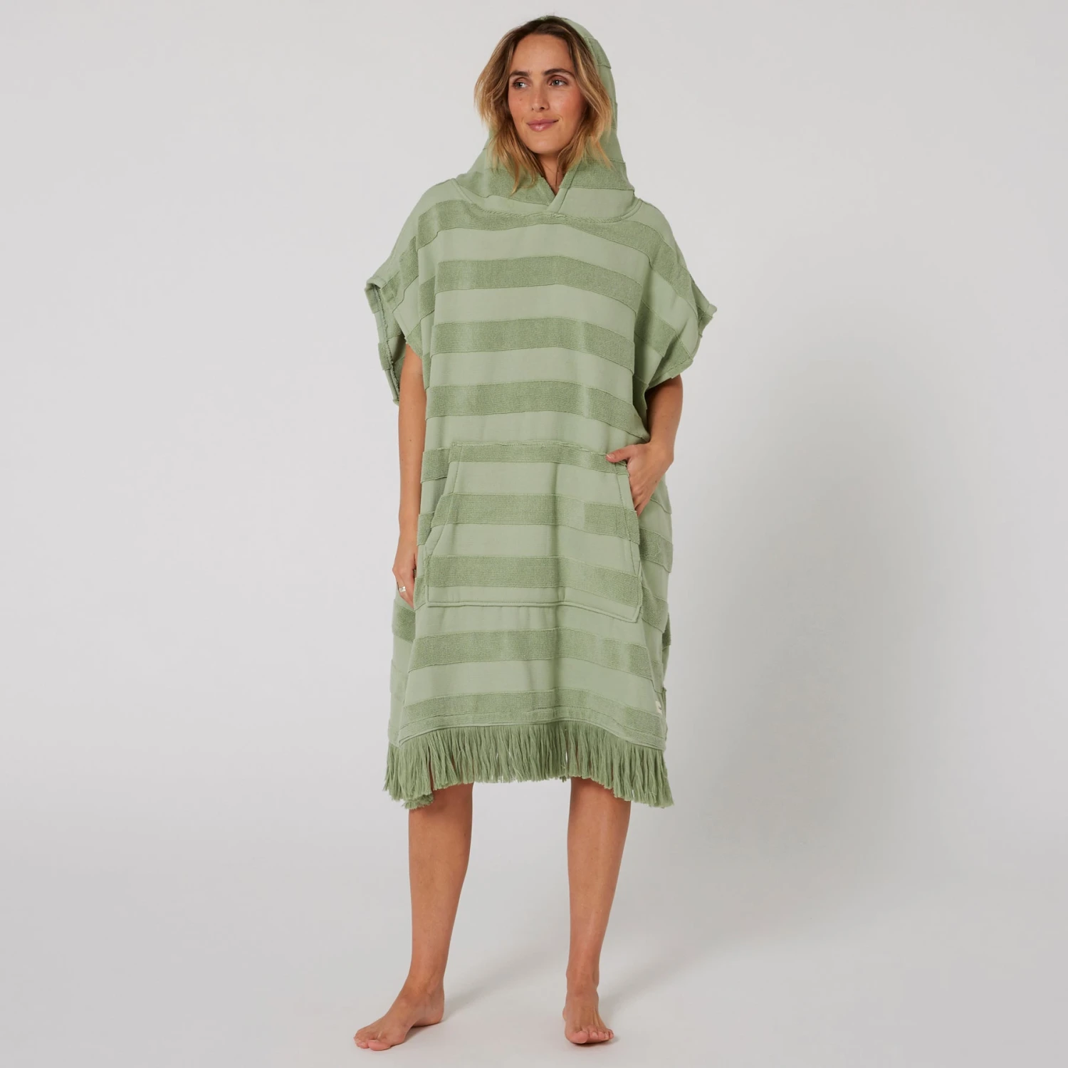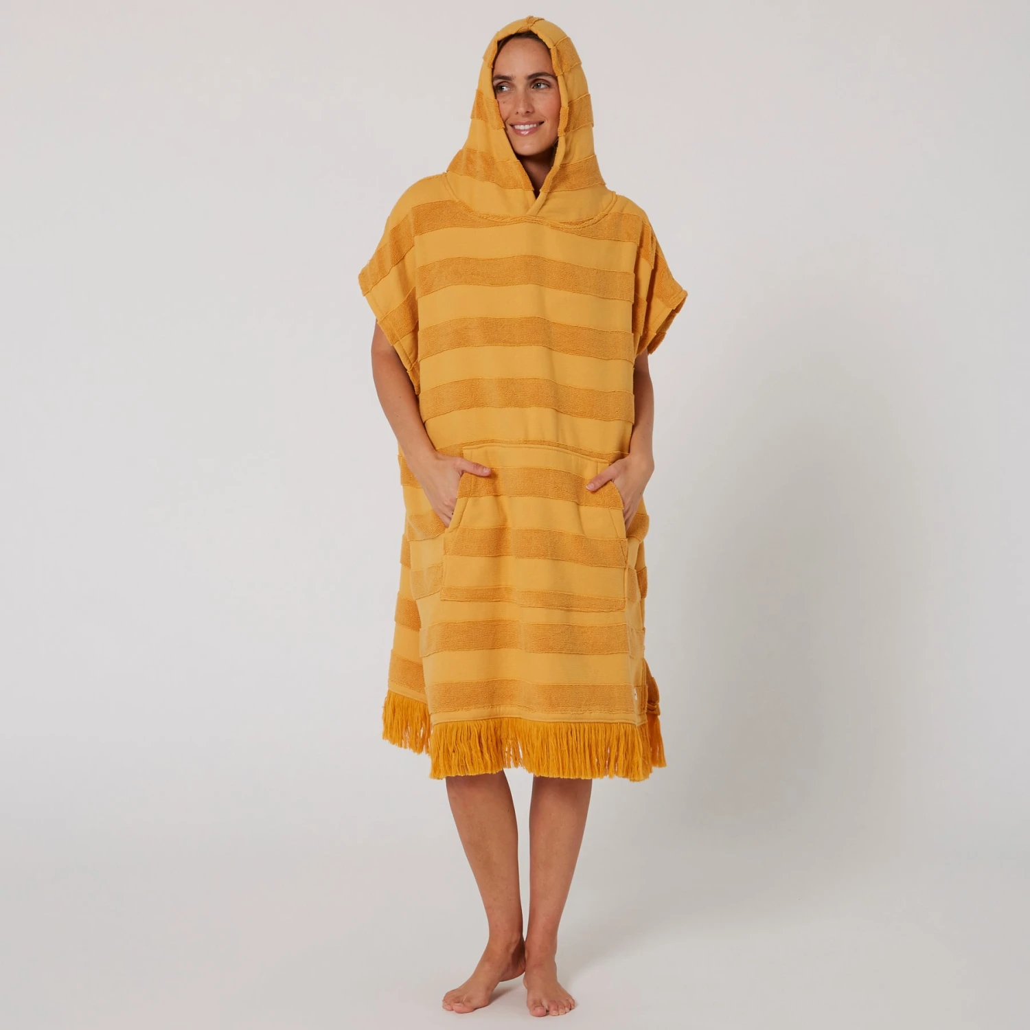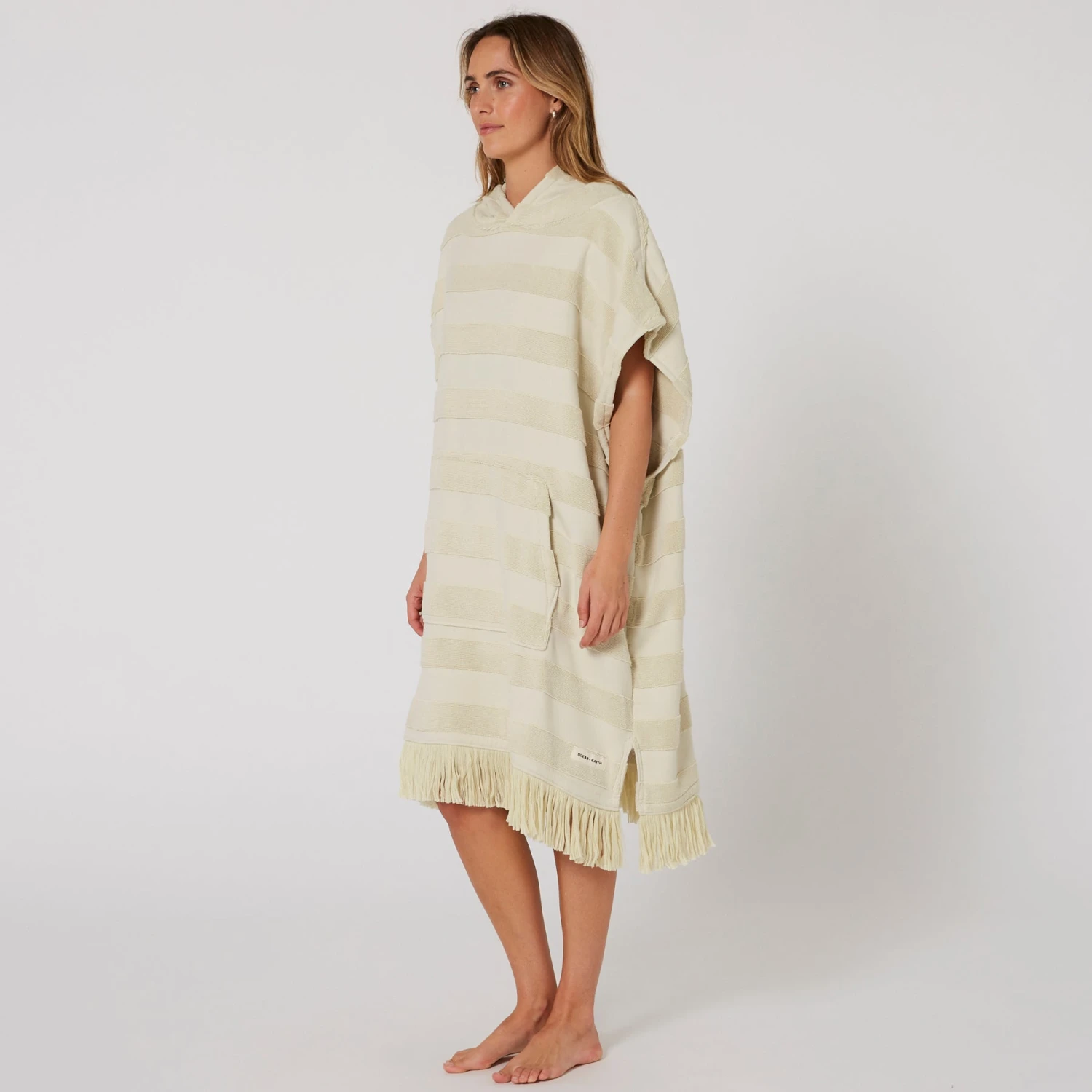 The Ladies Layz Hooded Poncho towel is perfect for drying off and changing out of your wetsuit or swimwear. With oversize sleeve openings and in lightweight 430SM 100% cotton Jacquard, lightweight poncho that you can slip in and out of after a day at the beach.
