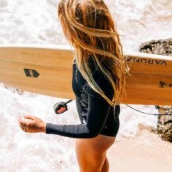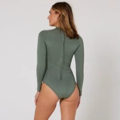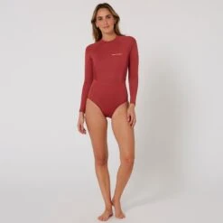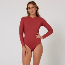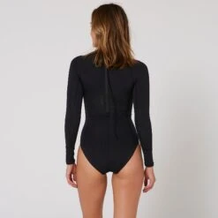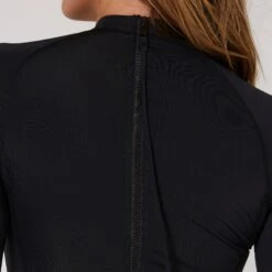 For that extra sun protection the Ladies Oceana Long Sleeve Back Zip Surf Suit has you covered. Made from high quality RECYCLED Polyester / Elastane with flat locked seams for maximum durability, stretch and comfort. Features a water resistant full length zipper and contour panelling for greater comfort. UPF 50+ UV Protection. This rash vest will protect you in style on those harsh summer days. Designed for surfing.