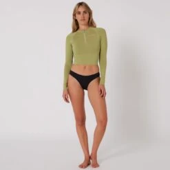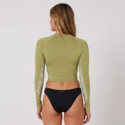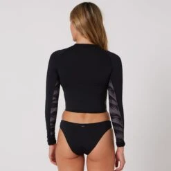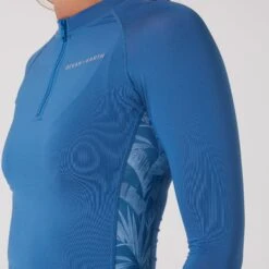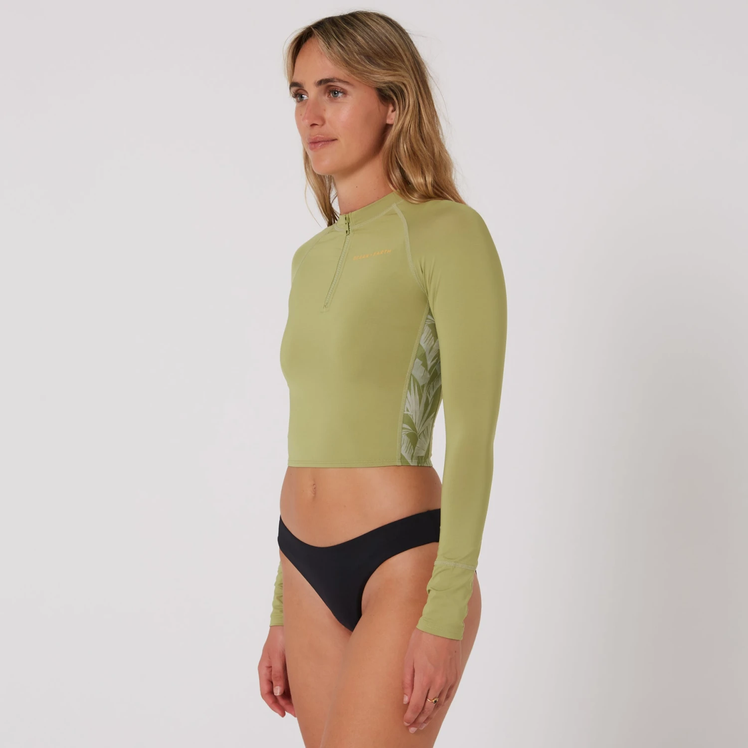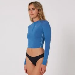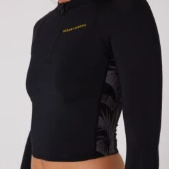 For that extra sun protection the Ladies Oceana Long Sleeve Crop Rash Vest has you covered. Made from high quality RECYCLED Polyester / Elastane with flat locked seams for maximum durability, stretch and comfort. Features a water resistant front zip and contour panelling for greater comfort. UPF 50+ UV Protection. This rash vest will protect you in style on those harsh summer days. Designed for surfing.