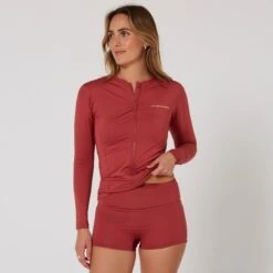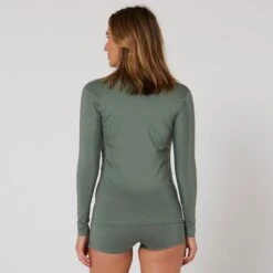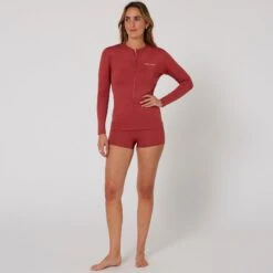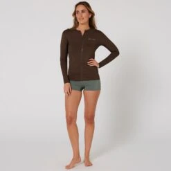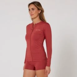 For that extra sun protection the Ladies Oceana Long Sleeve Front Zip Rash Vest has you covered. Made from high quality Nylon/ Elastane with flat locked seams for maximum durability, stretch and comfort. Features a water resistant full length zipper and contour panelling for greater comfort. UPF 50+ UV Protection. This rash vest will protect you in style on those harsh summer days. Designed for surfing.