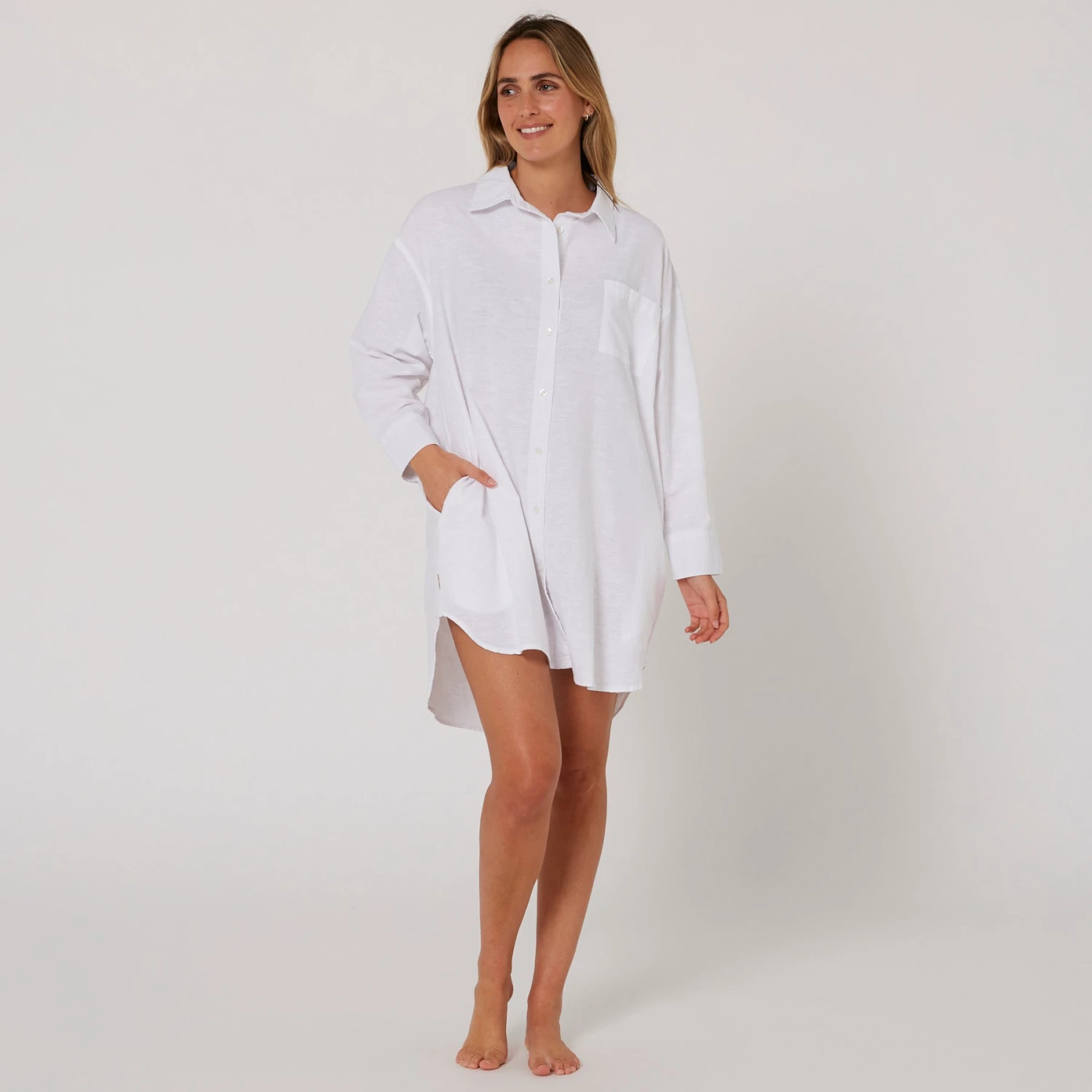 Linen OS LS Shirt Dress