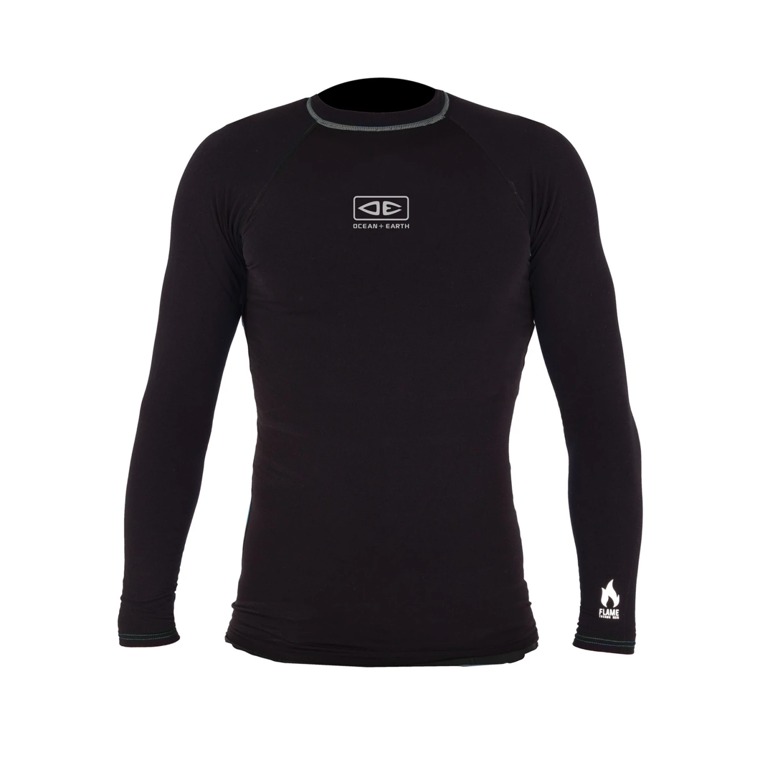 Mens Flame Long Sleeve Thermo Skin is the perfect base layer, with fleece lining to provide extra warmth under your wetsuit. Suitable as a paddle shirt or for summer surfing. This Thermo skin provides the stretch of a rash vest with added warmth.