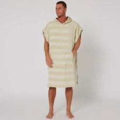 The Mens Layz Hooded Poncho Towel is perfect for drying off and changing out of your wetsuit or swimwear. With oversized sleeve openings, a kanga pouch and 430GSM 100% cotton Jacquard, this is an easy poncho that you can slip in and out of after a day at the beach.
