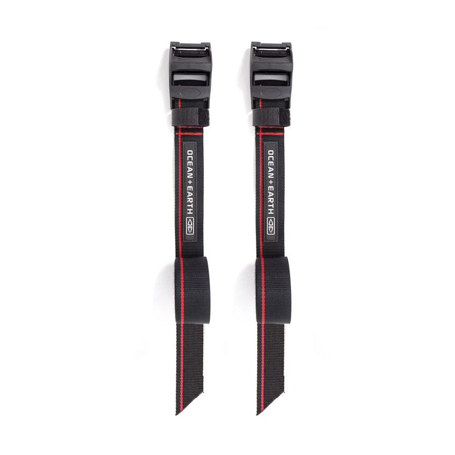 Need some straps to secure your surfboard to your roof racks? The Surfboard Tie Down Straps from Ocean and Earth are easy to attached and remove, featuring a 25mm wide webbing with protective rubber cam buckle to avoid scratches on your car. Comes with a storage bag. These premium tie down straps will secure your board safely to your vehicles roof rack system.