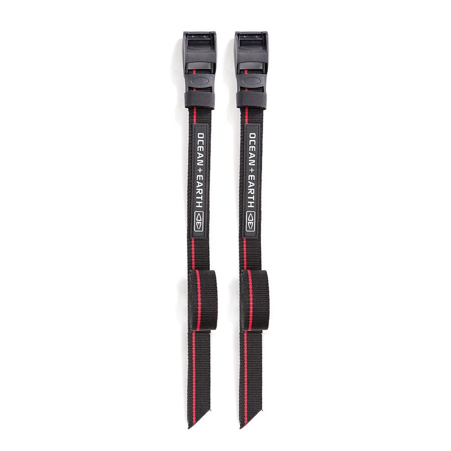 Need some straps to secure your surfboard to your roof racks? The Surfboard Tie Down Straps from Ocean and Earth are easy to attached and remove, featuring a 25mm wide webbing with protective rubber cam buckle to avoid scratches on your car. Comes with a storage bag. These premium tie down straps will secure your board safely to your vehicles roof rack system.