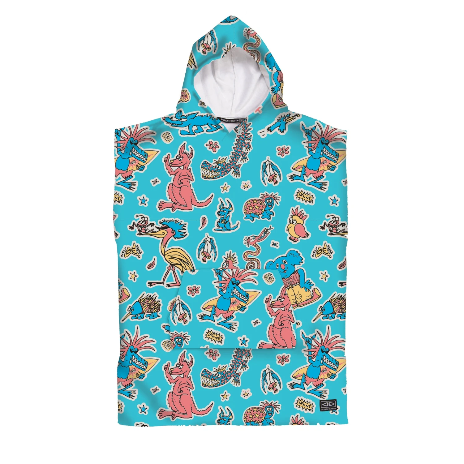 Keep your toddler warm and dry with the Toddlers Irvine Hooded Poncho Towel. A limited edition Jack Irvine print. With oversize sleeve openings, kanga pocket and in Lightweight 250GSM comfy microfibre this is an easy poncho to slip in and out of after a day at the beach.