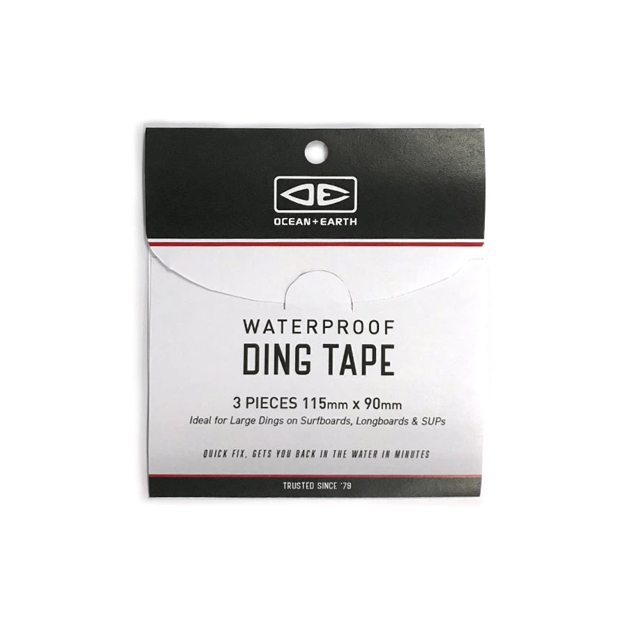 Damaged your board? Ocean and Earth’s Waterproof Surfboard Ding Tape (Large) is a great quick-fix solution that will get you back in the water in seconds. Comes with 3 x repair patches ( 115mm x 90mm ). Easy to apply this is an essential item for all travelling surfers.Â